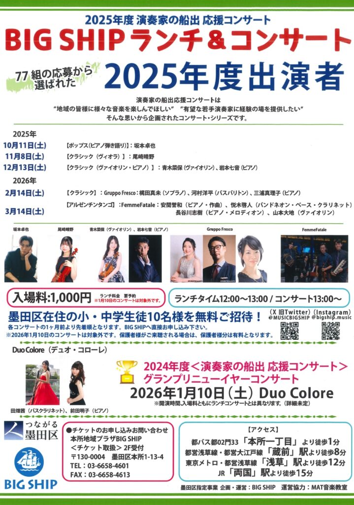 これからも本所地域プラザBIG SHIPでは若手演奏家の船出を応援していく所存です。どうぞ宜しくお願い致します。