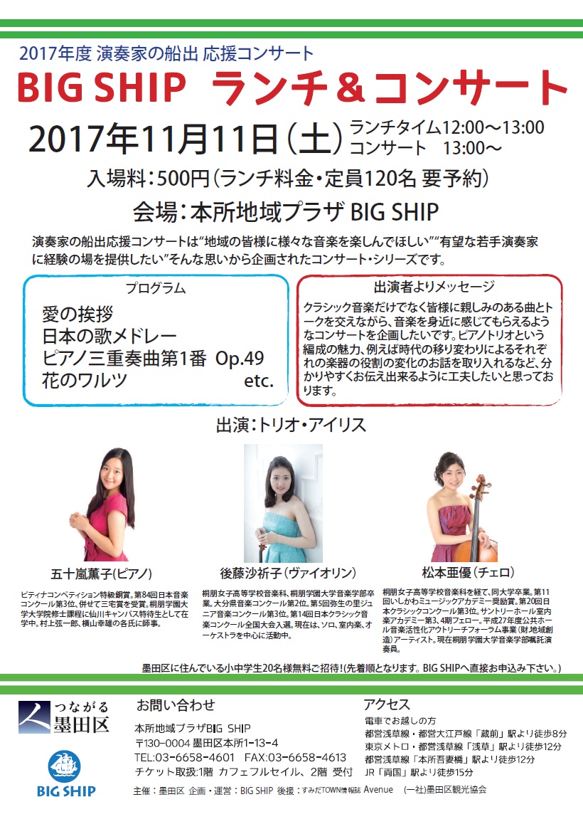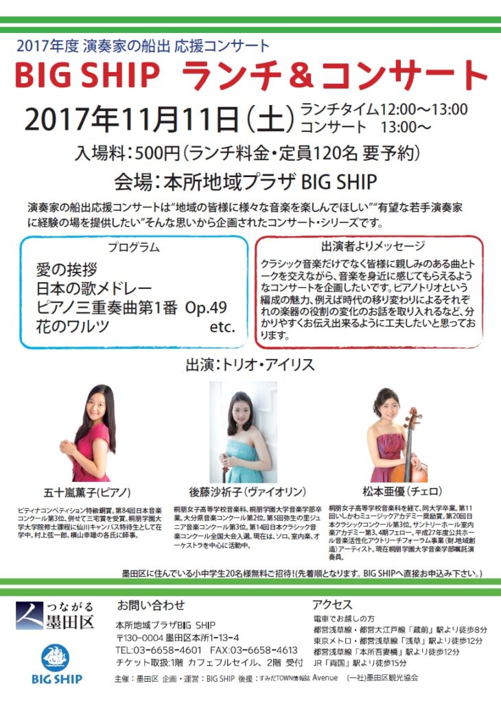 2017年11月11日(土)ランチタイム12:00~13:00 コンサート13:00~