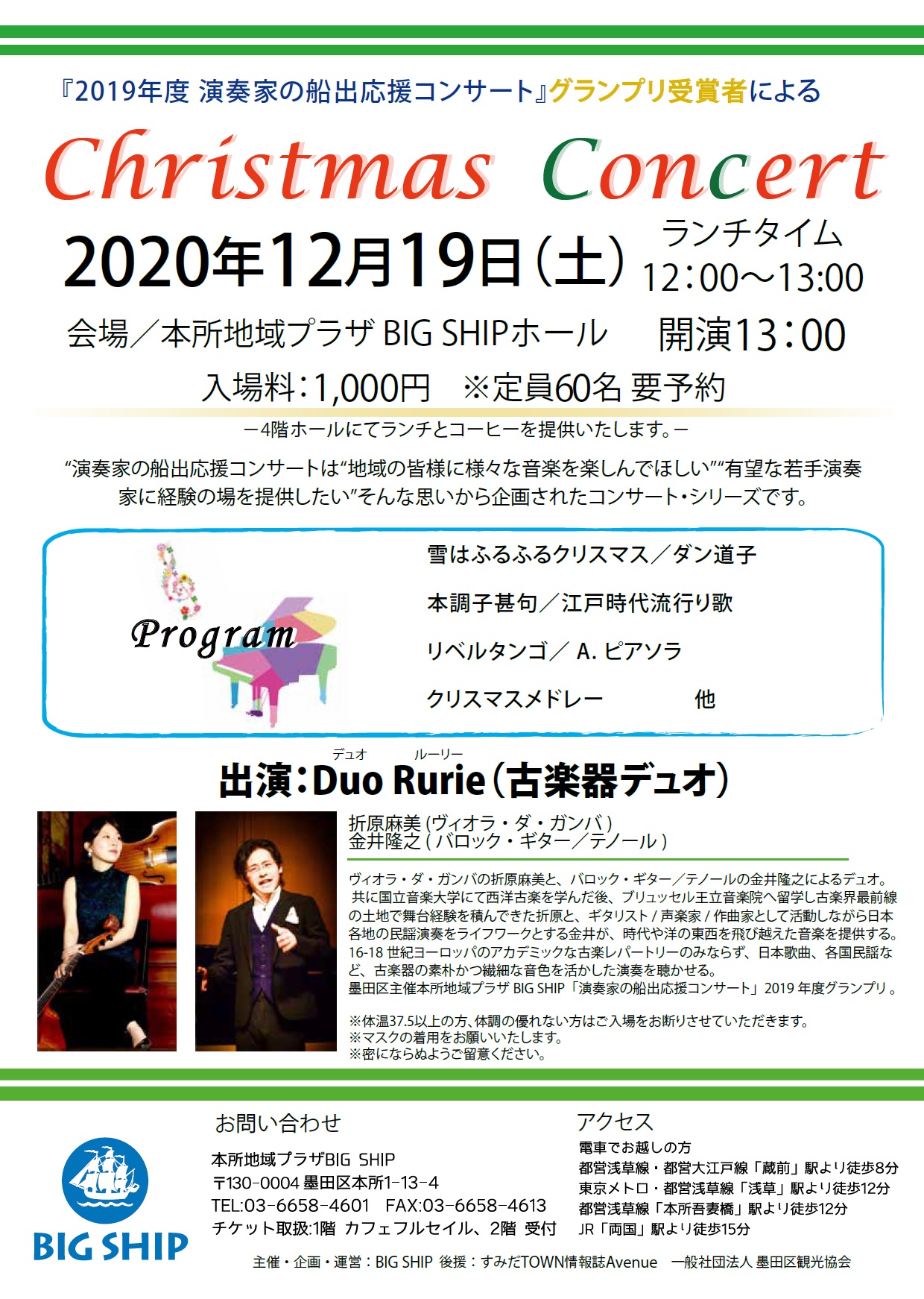 2020年12月19日(土)グランプリ受賞者「Duo Rurie」によるクリスマス・コンサート